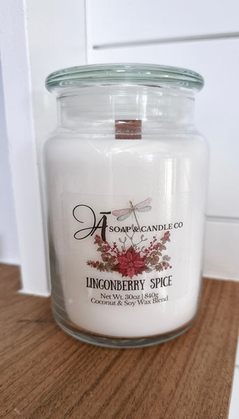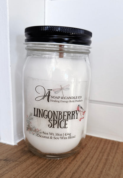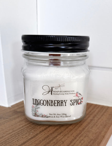 This vessel is a mason style glass jar container with a custom blend wax of coconut and soy wax.